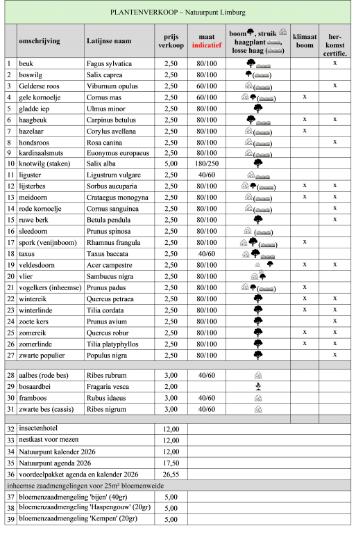 Wil je ons contacteren? Stuur een e-mail naar: plantenverkoop@natuurpuntlimburg.be
